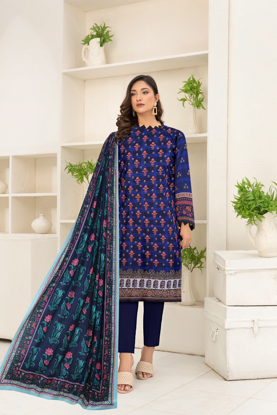 Our Ladies Lawn 3-Piece Suits offer the perfect blend of comfort and style. Featuring a printed lawn shirt, matching trousers, and a lightweight lawn dupatta – ideal for everyday wear or casual outings in the summer heat.”